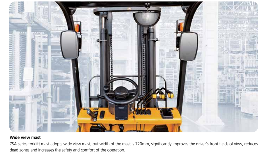Khung chính: Xe nâng này có một khung chính mạnh mẽ, được thiết kế để chịu được áp lực và tải trọng lớn.