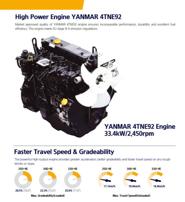 Dễ sử dụng: Với hệ thống lái nhạy bén và thiết kế người sử dụng thân thiện, 33D-9E dễ dàng vận hành.