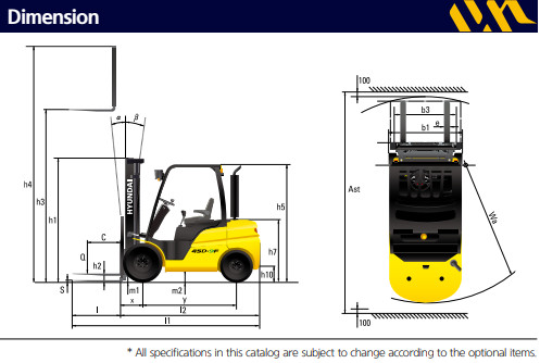 Thông số kỹ thuật Xe nâng dầu Hyundai 4.5 Tấn 45D-9F