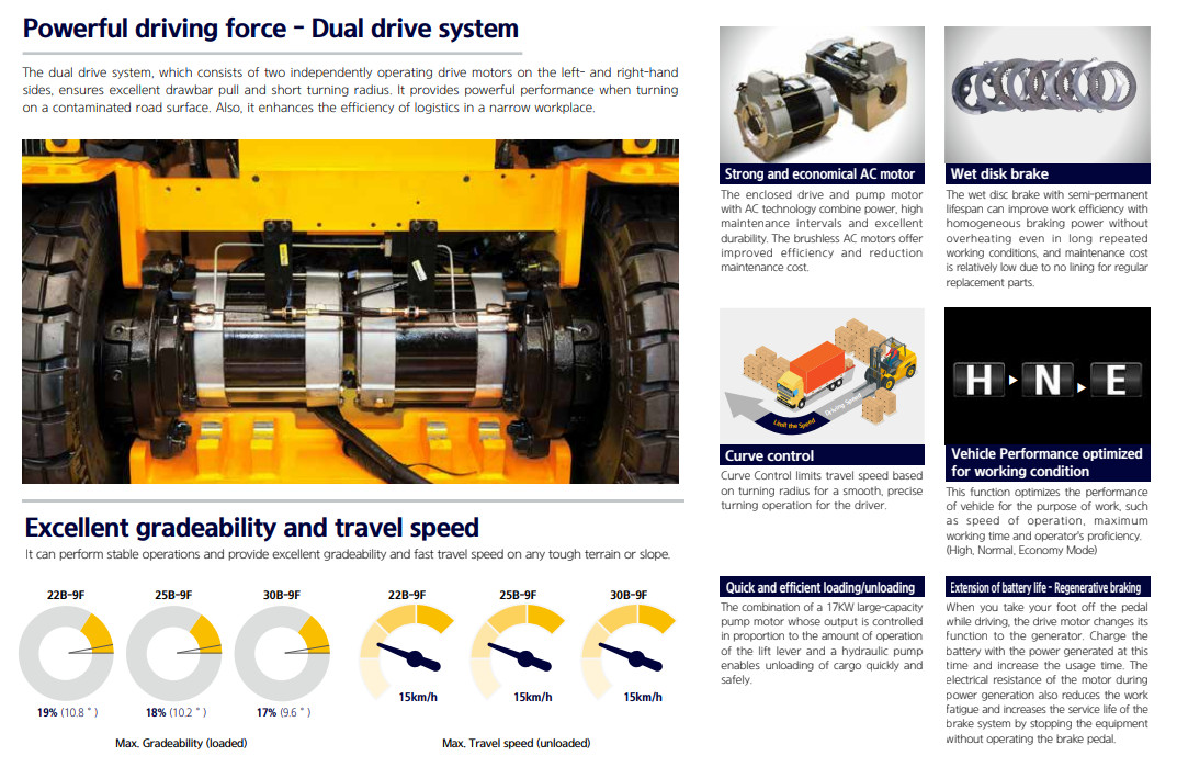 Tính năng của Xe nâng điện Hyundai 2.2 Tấn 22B-9F