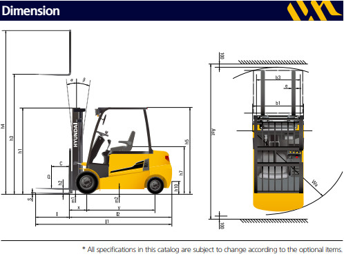 Thông số kỹ thuật Xe nâng điện Hyundai 2.2 Tấn 22B-9F