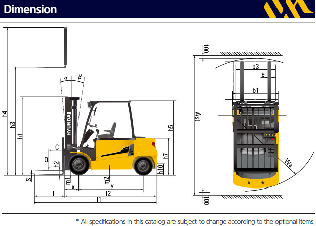 Thông số cơ bản xe nâng điện Hyundai 4 tấn 40B-9