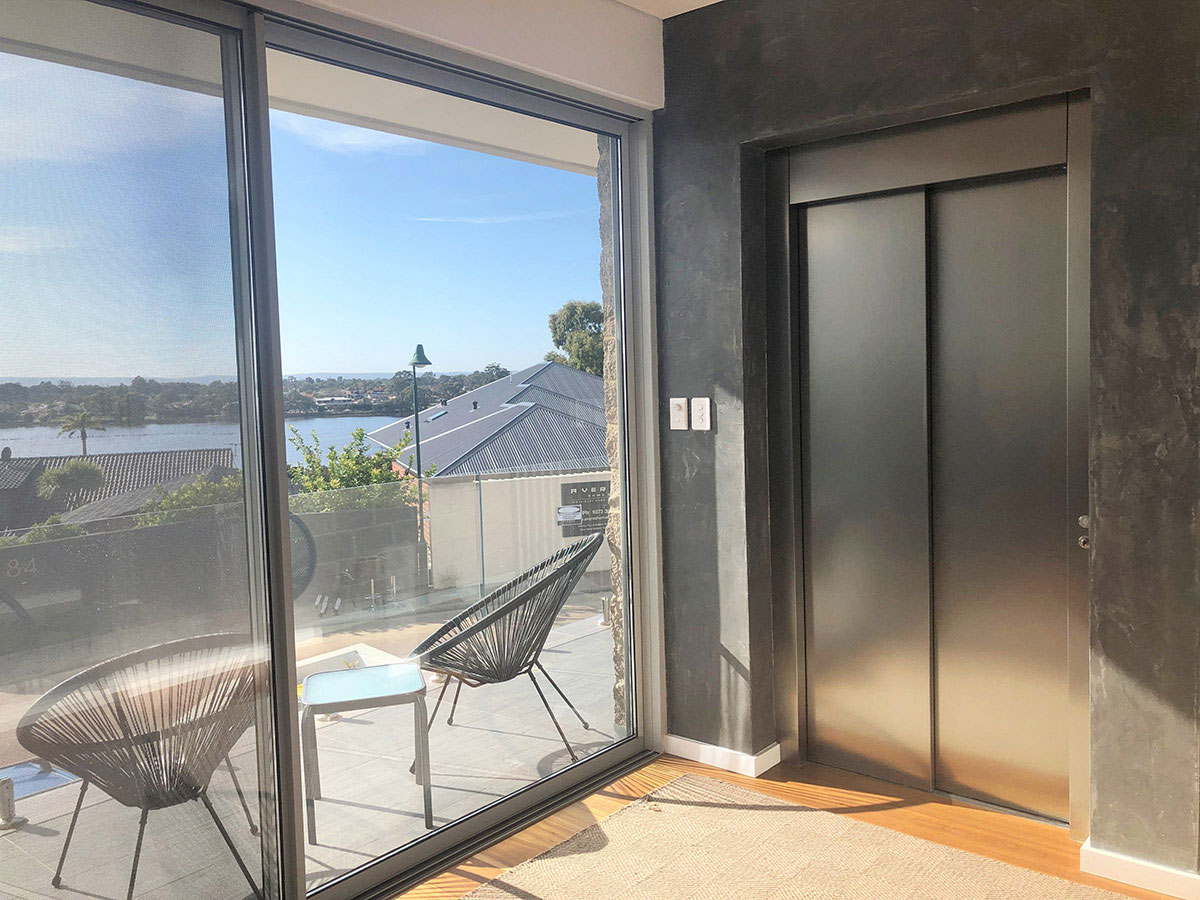 Bảng điều khiển cabin và cửa tầng được thiết kế đơn giản và sang trọng.