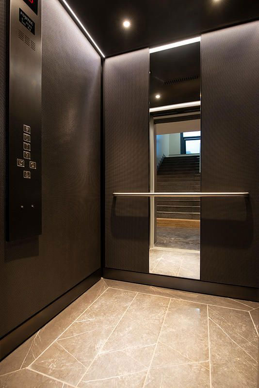 - Thang máy sẽ được tích hợp với giếng thang thông qua tấm thép hoặc tấm kính phù hợp.